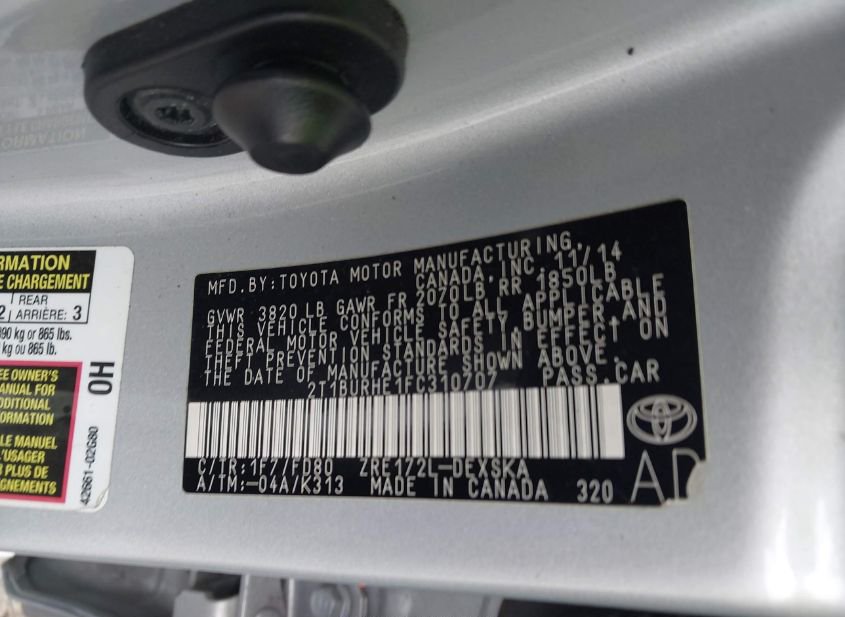 - VIN: 2T1BURHE1FC310707