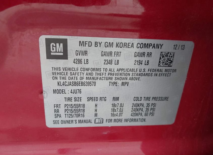 - VIN: KL4CJASB6EB639570