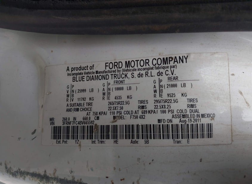- VIN: 3FRNF7FC4BV665592
