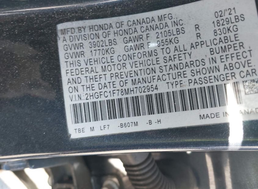 - VIN: 2HGFC1F78MH702954