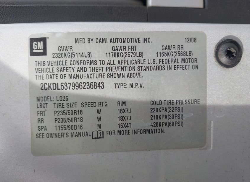 - VIN: 2CKDL637996236843