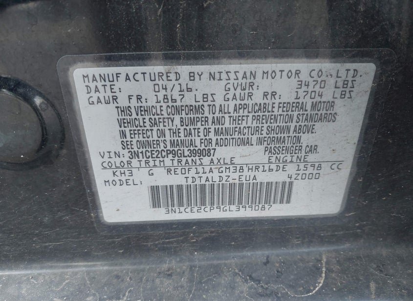 - VIN: 3N1CE2CP9GL399087