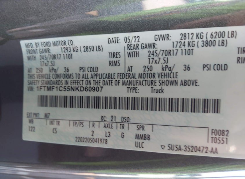 - VIN: 1FTMF1C55NKD60907