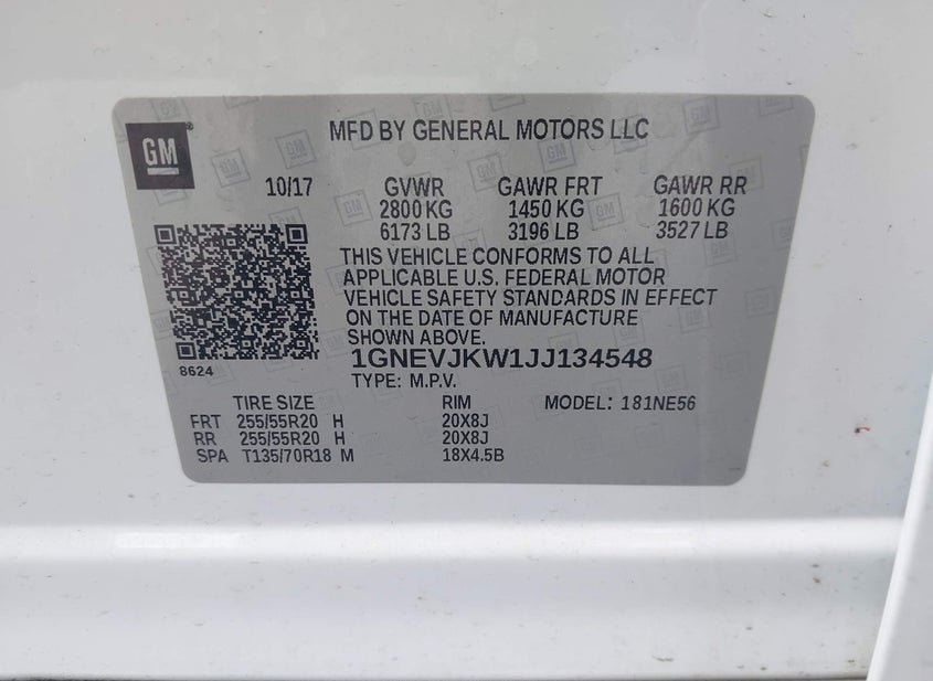 - VIN: 1GNEVJKW1JJ134548