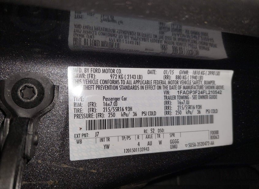 - VIN: 1FADP3F24FL210542