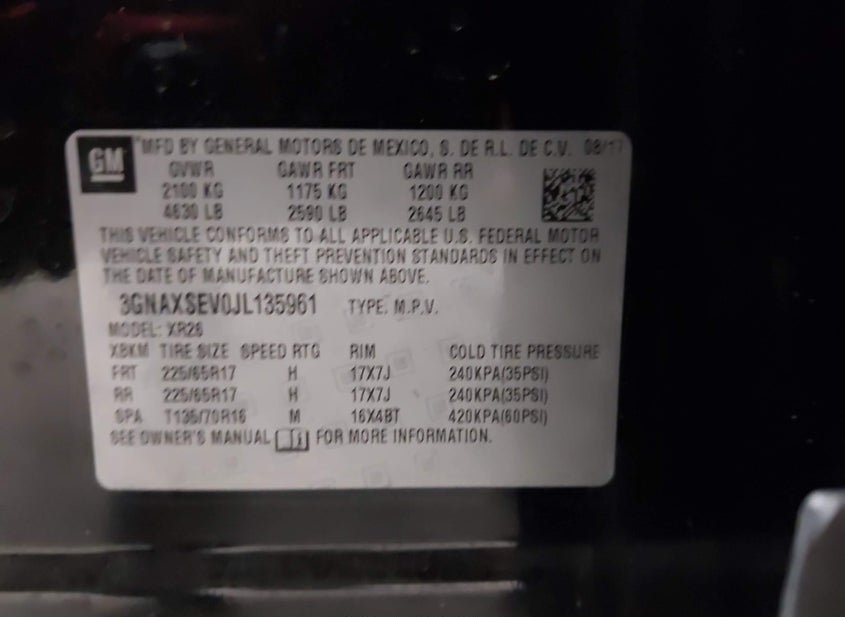 - VIN: 3GNAXSEV0JL135961