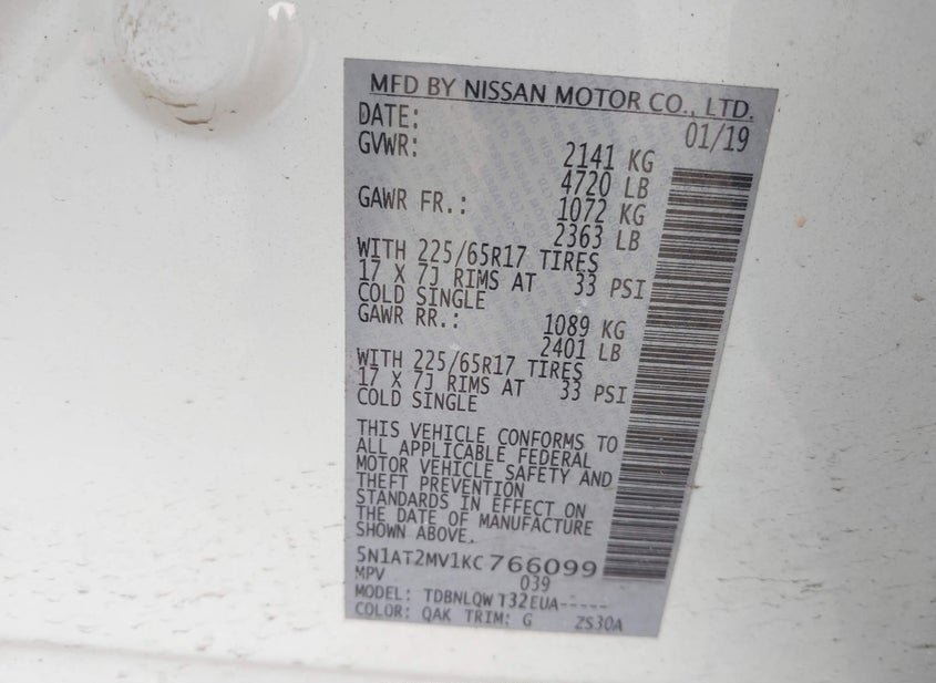 - VIN: 5N1AT2MV1KC766099