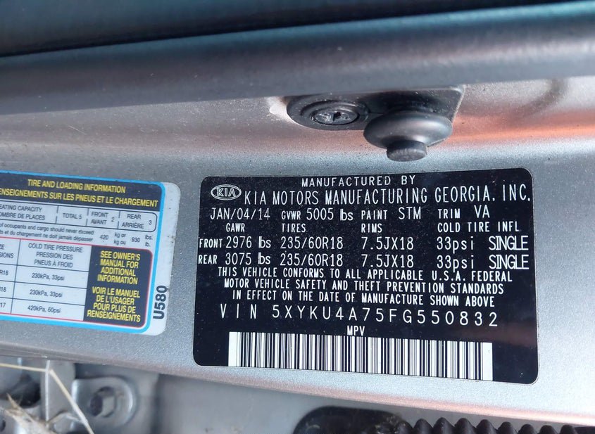 - VIN: 5XYKU4A75FG550832