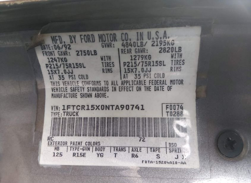 - VIN: 1FTCR15X0NTA90741
