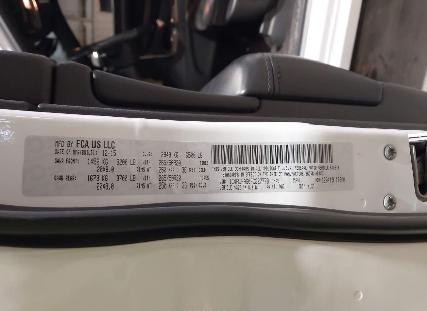 - VIN: 1C4RJFAG0FC227778