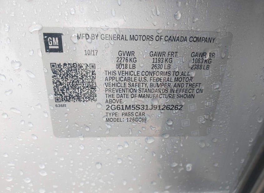 - VIN: 2G61M5S31J9126262