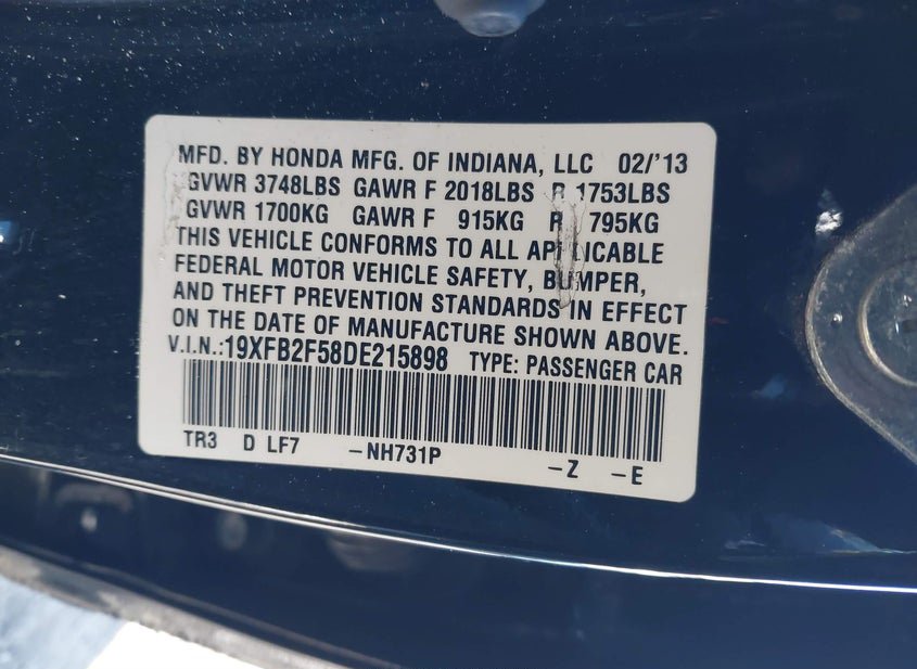 - VIN: 19XFB2F58DE215898