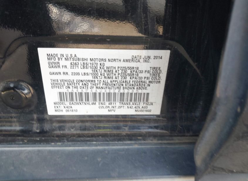 - Название лота: 2014 MITSUBISHI OUTLANDER SPORT SE
