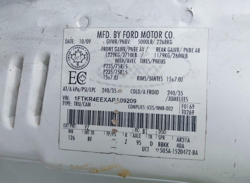 - VIN: 1FTKR4EEXAPA09209