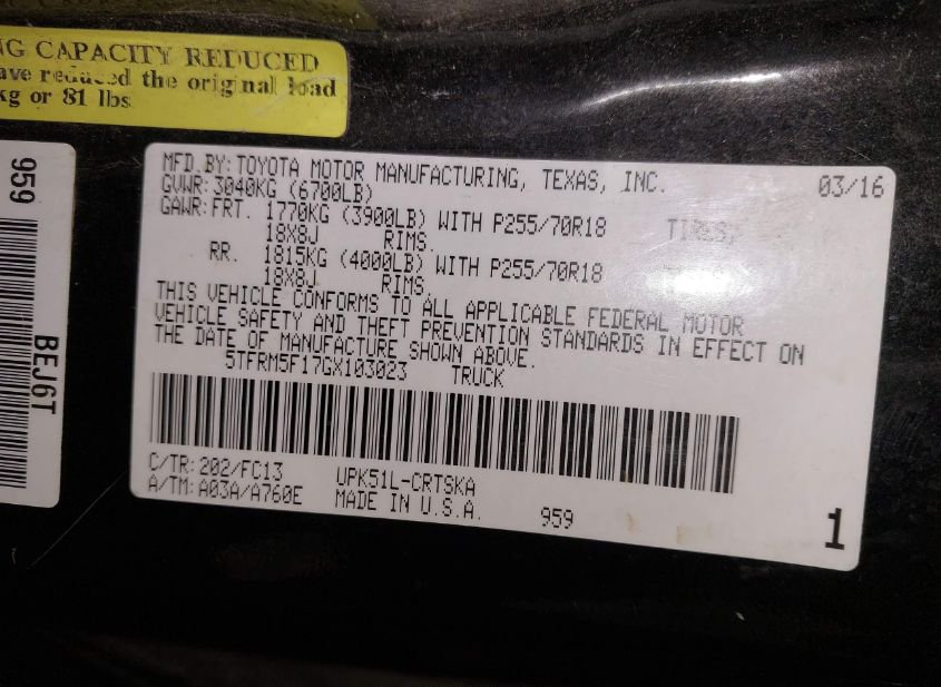 - VIN: 5TFRM5F17GX103023