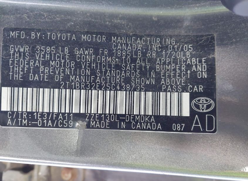 - VIN: 2T1BR32E25C438735