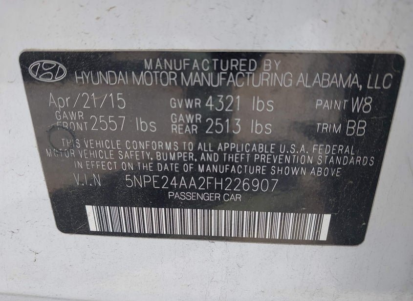 - VIN: 5NPE24AA2FH226907