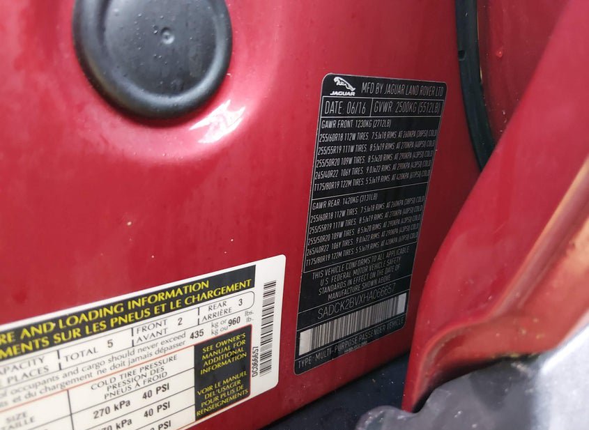 - Название лота: 2017 JAGUAR F-PACE 35T PRESTIGE