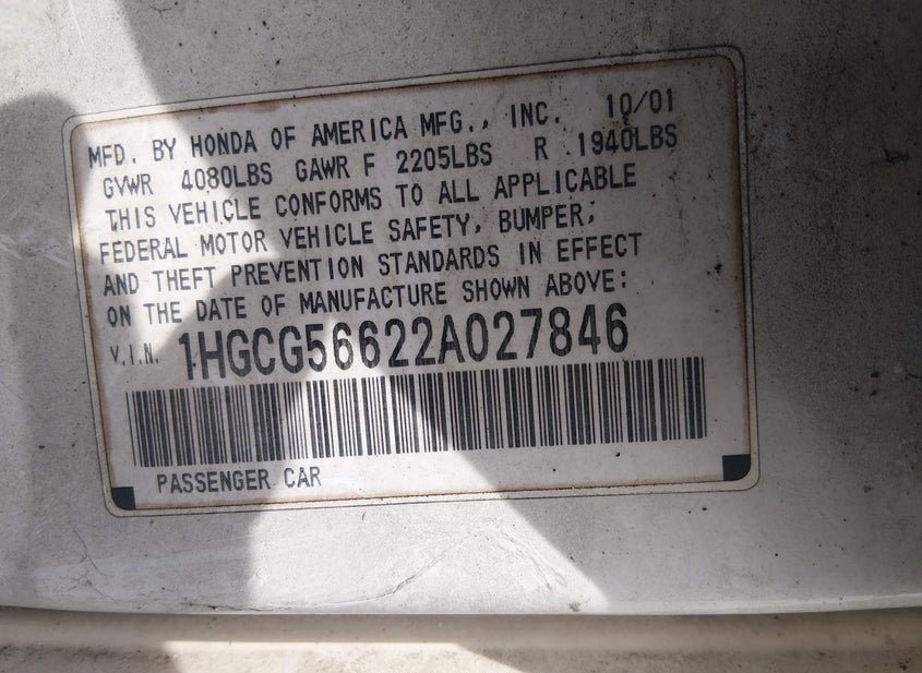- VIN: 1HGCG56622A027846
