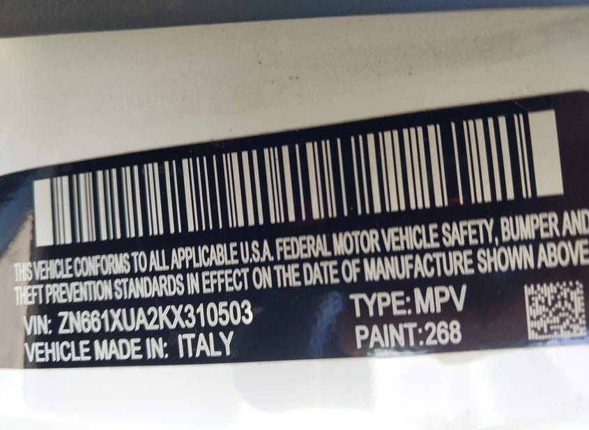 - VIN: ZN661XUA2KX310503