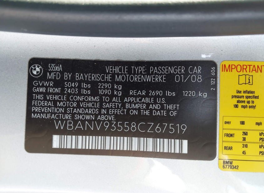 - VIN: WBANV93558CZ67519