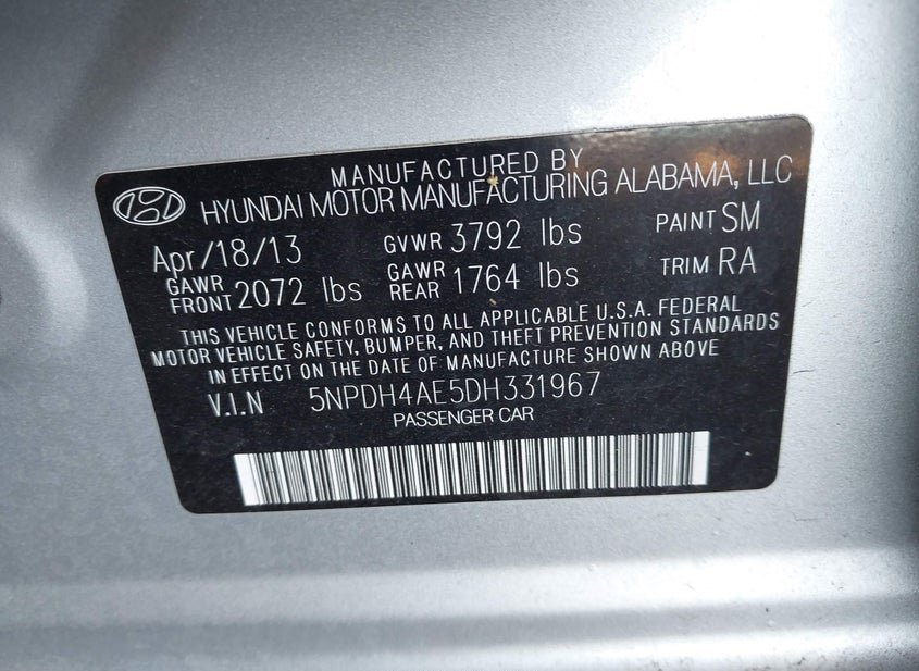 - VIN: 5NPDH4AE5DH331967