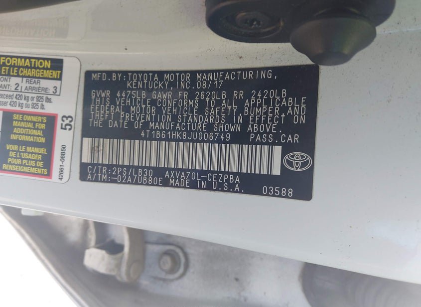 - VIN: 4T1B61HK8JU006749