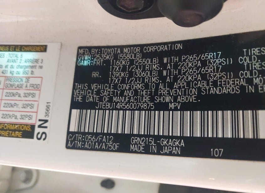 - VIN: JTEBU14R560079875