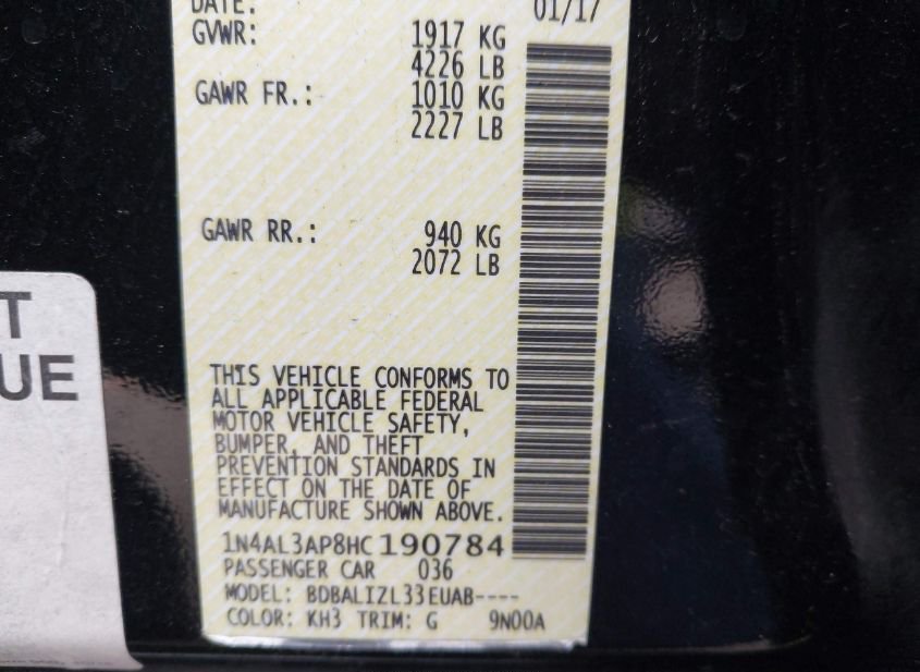 - VIN: 1N4AL3AP8HC190784