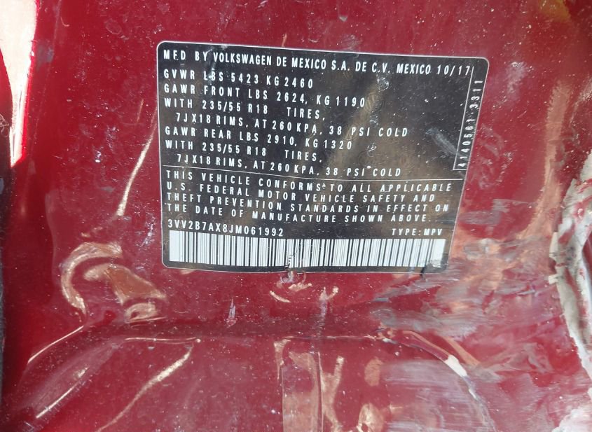 - VIN: 3VV2B7AX8JM061992