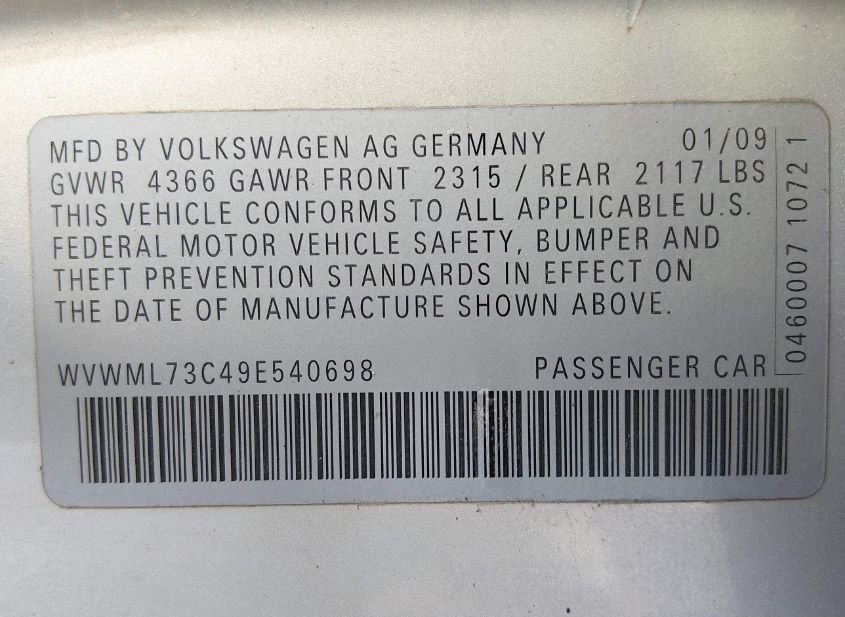 - VIN: WVWML73C49E540698