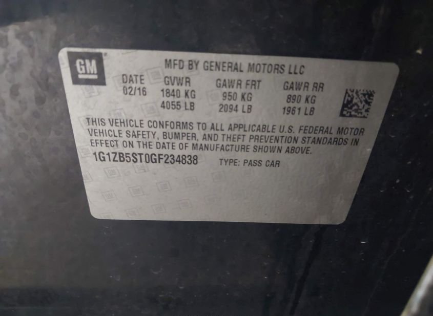 - VIN: 1G1ZB5ST0GF234838