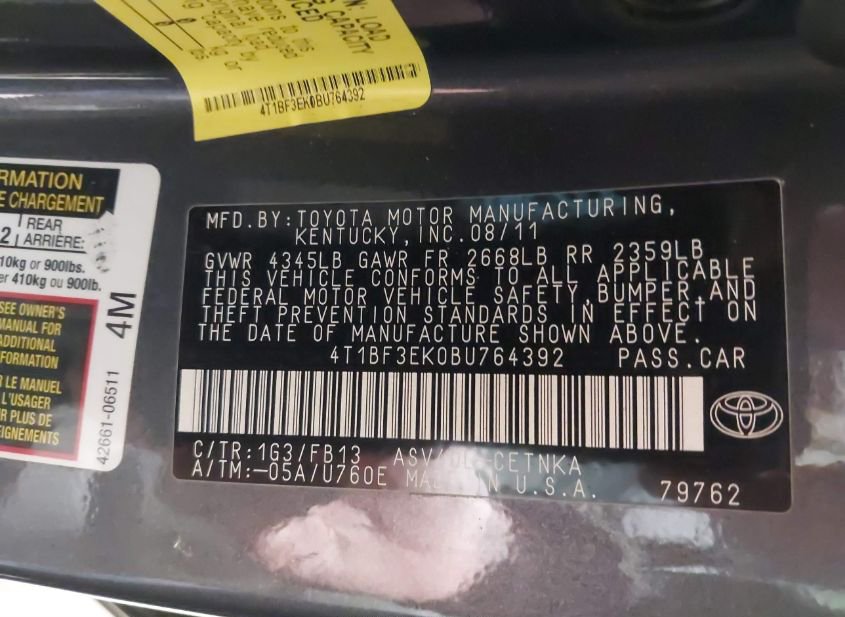 - VIN: 4T1BF3EK0BU764392