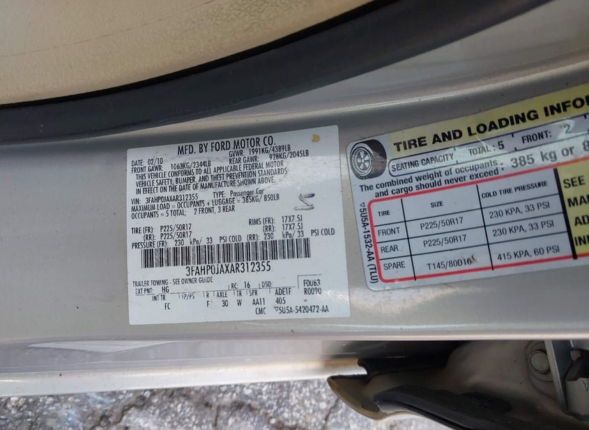 - VIN: 3FAHP0JAXAR312355