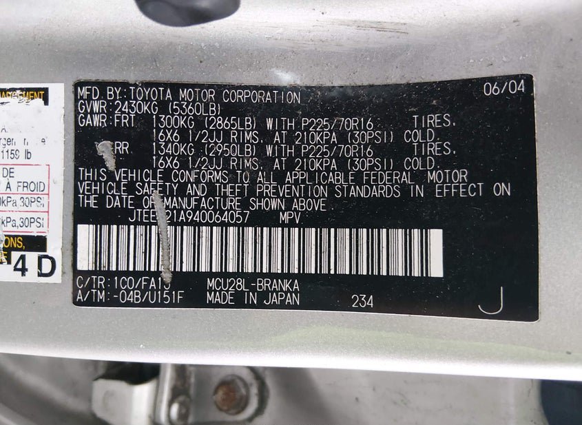 - VIN: JTEEP21A940064057