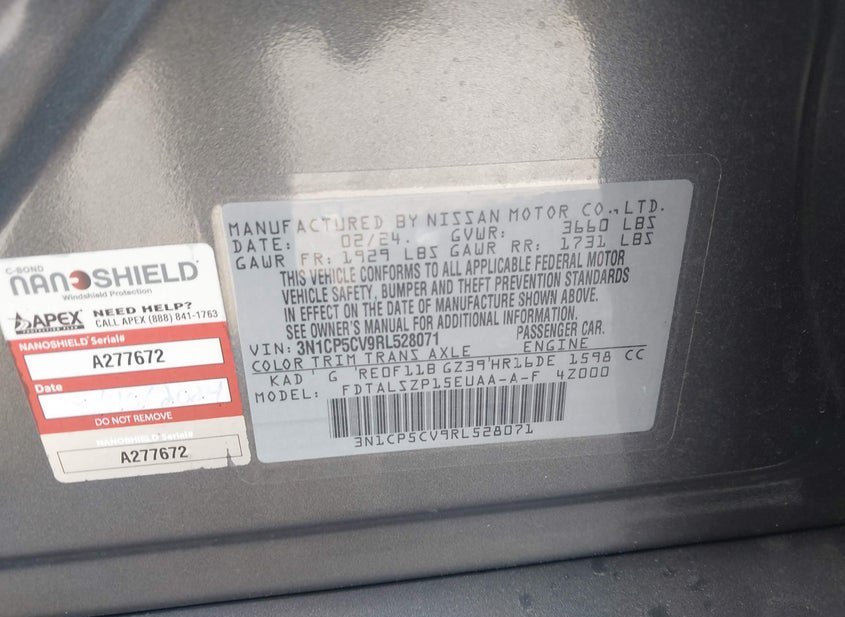 - VIN: 3N1CP5CV9RL528071