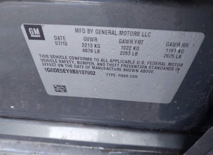 - VIN: 1G6DE5EY8B0107902