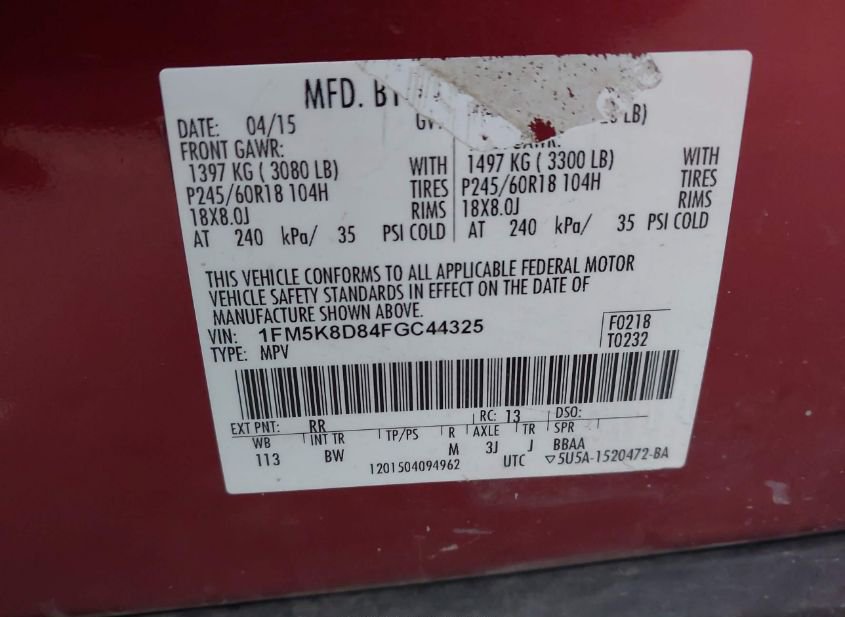 - VIN: 1FM5K8D84FGC44325