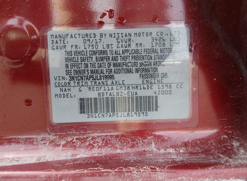 - VIN: 3N1CN7AP5JL819595