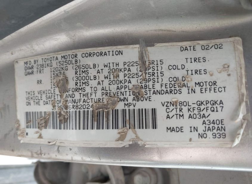- Название лота: 2002 TOYOTA 4RUNNER SR5 V6
