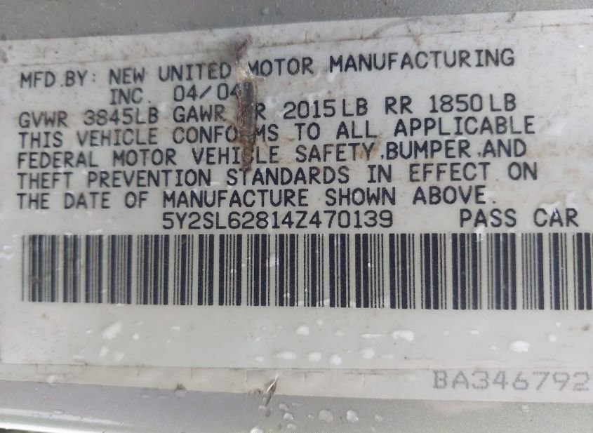 - VIN: 5Y2SL62814Z470139