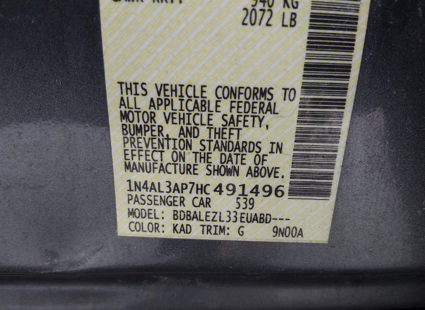 - VIN: 1N4AL3AP7HC491496