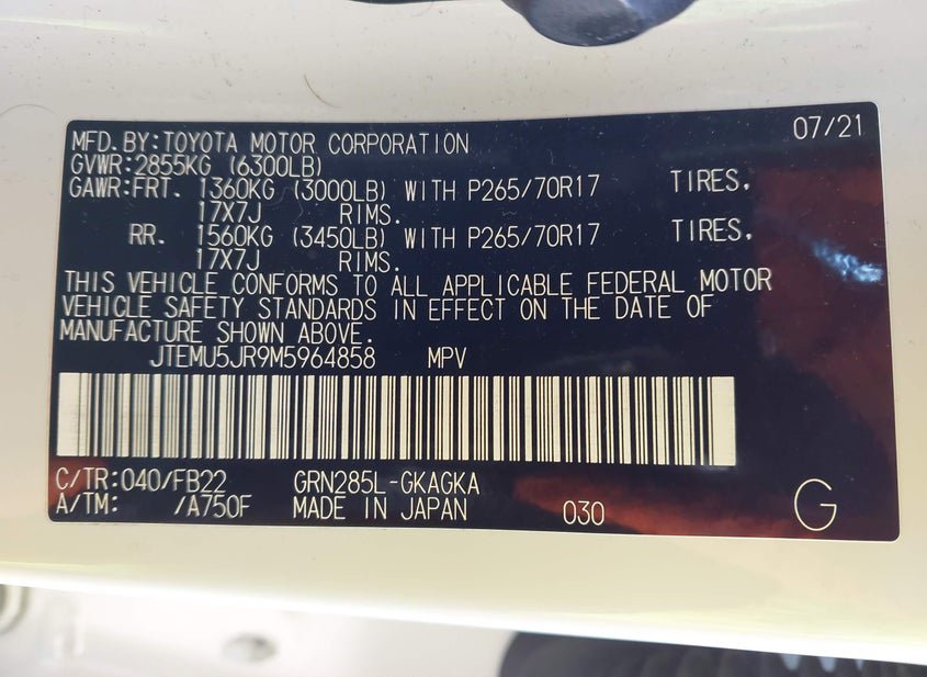 - VIN: JTEMU5JR9M5964858