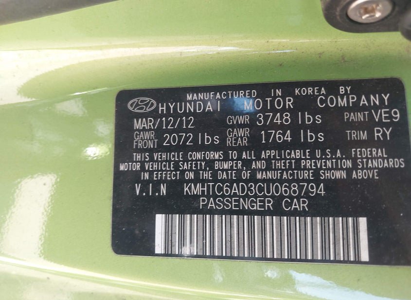 - VIN: KMHTC6AD3CU068794