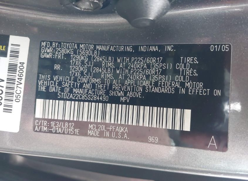 - VIN: 5TDZA22C85S284490