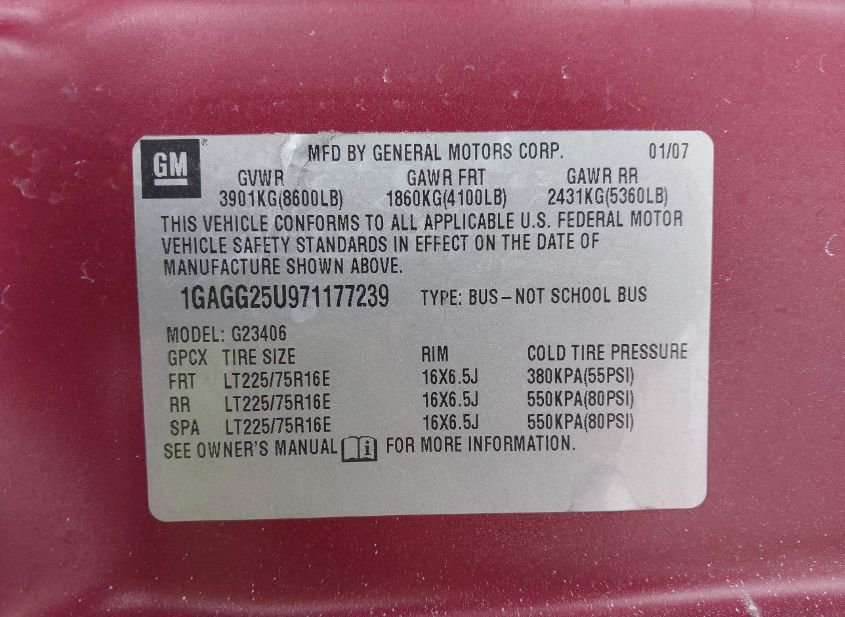 - VIN: 1GAGG25U971177239