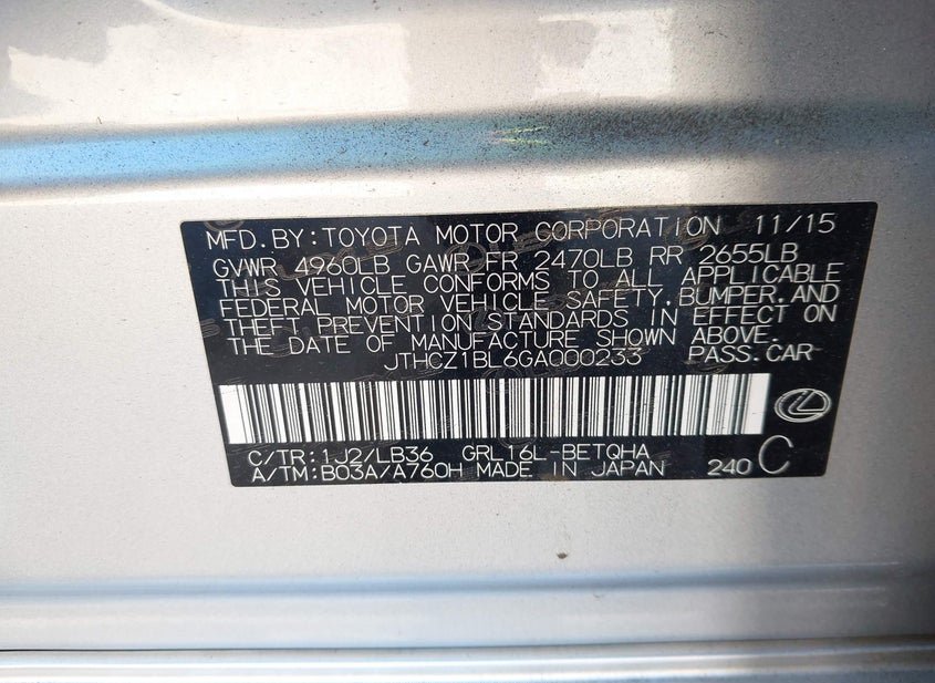 - VIN: JTHCZ1BL6GA000233