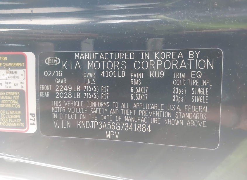 - VIN: KNDJP3A56G7341884