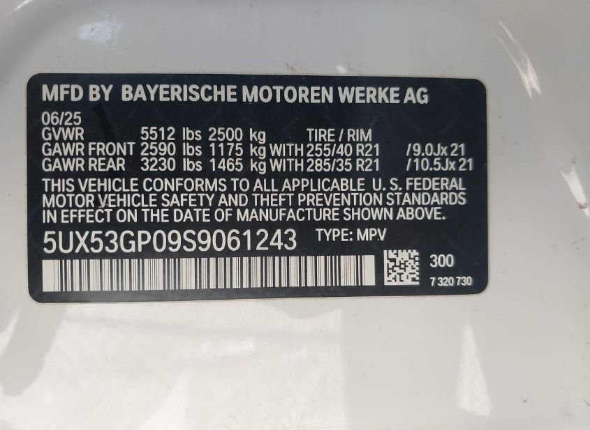 - VIN: 5UX53GP09S9061243