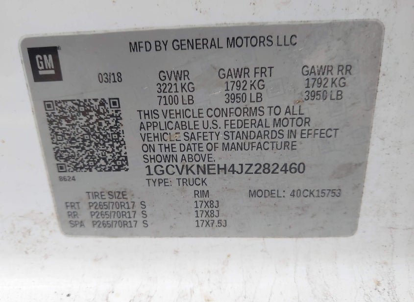 - VIN: 1GCVKNEH4JZ282460